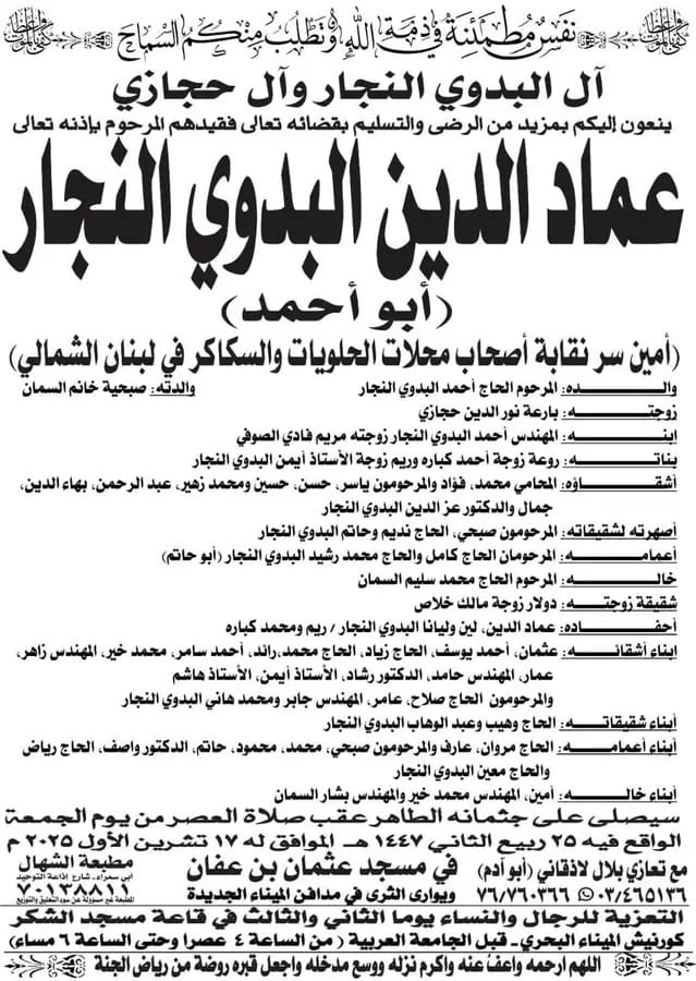 وفاة عم الأستاذين روني ورنا الحاج