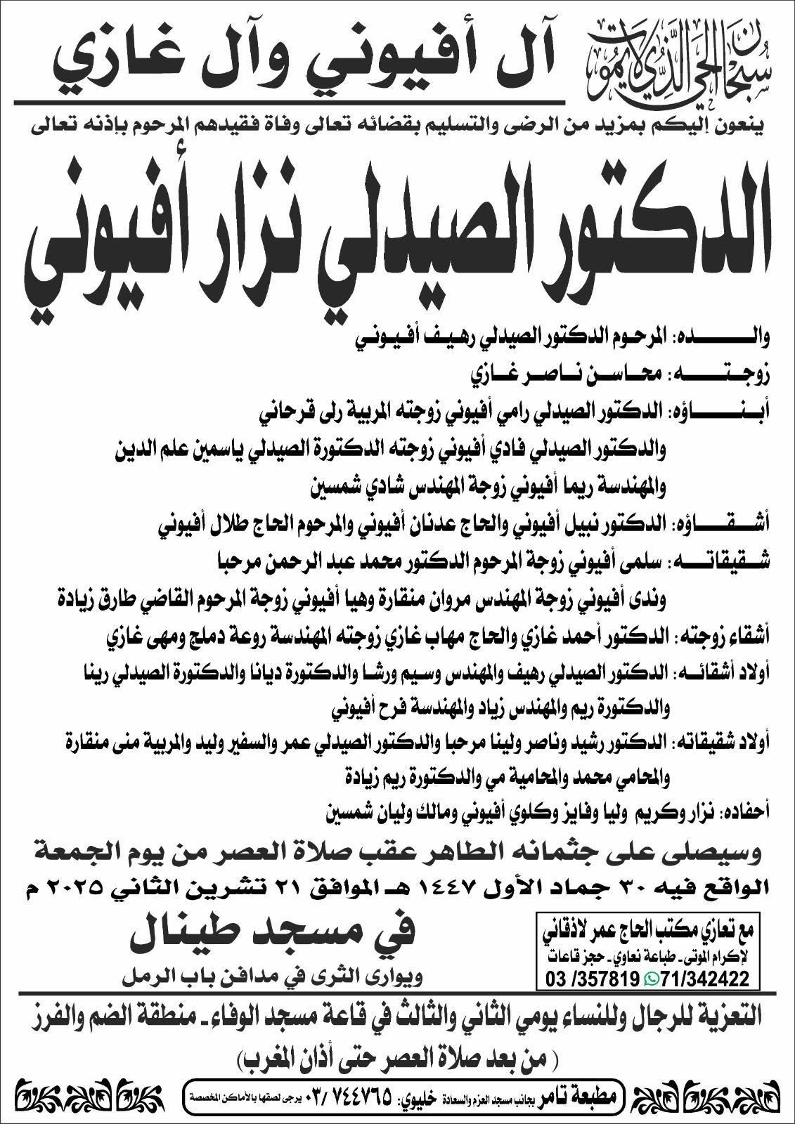 وفاة والدة الأستاذين محمد ووسيم حافضة