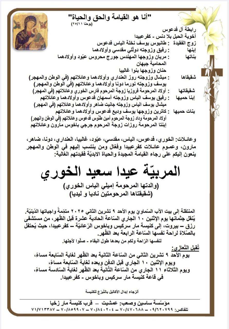 تذكير بعقد الجمعية العامة العادية السنوية لتلاوة تقرير النقيب ومناقشة وتدقيق الحساب النهائي للسنة المالية 2024/2025 وموازنة السنة المالية 2025/2026 واقرارهما