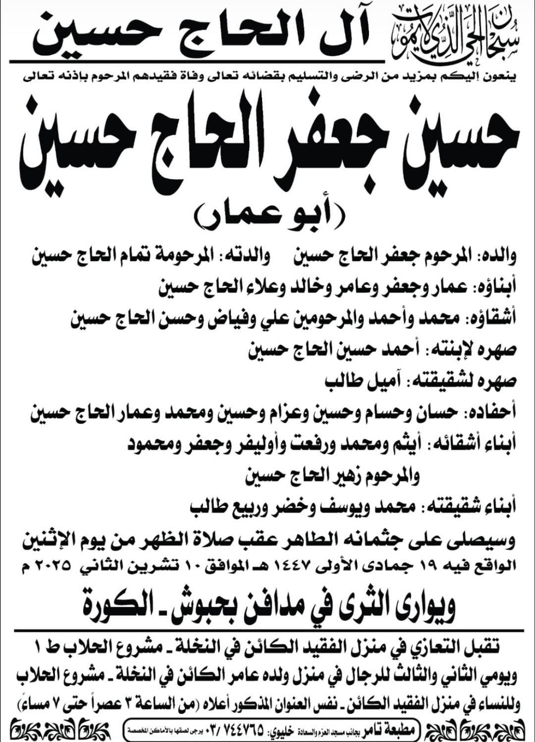 وفاة جد الاستاذة رهام الحاج حسين