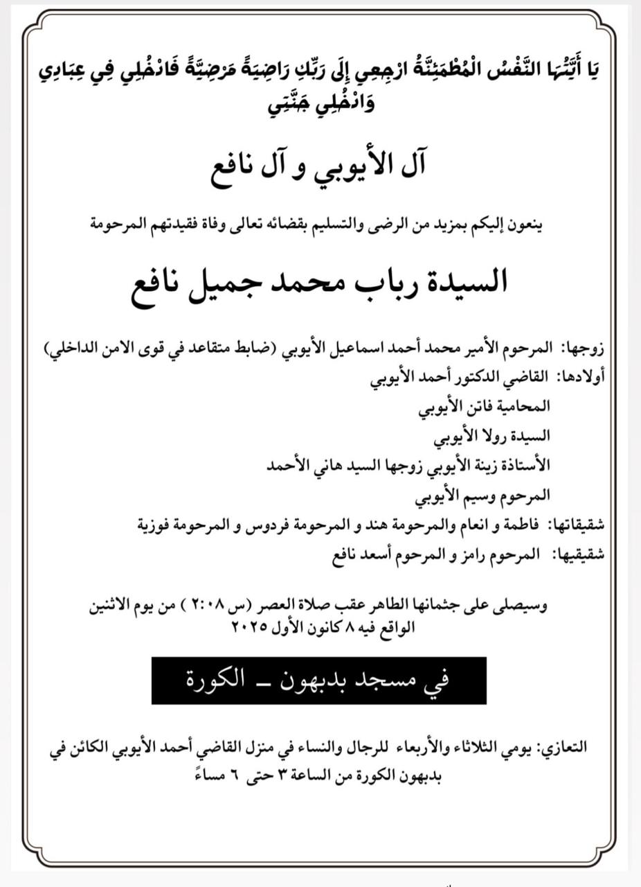 وفاة جدة الاستاذ محمد مصطفى الدهيبي