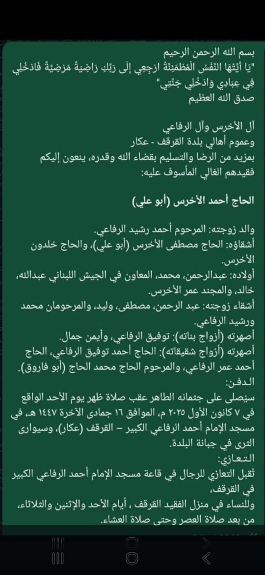 وفاة والد الأستاذة فاطمة الأخرس
